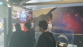 Die Schülerinnen und Schüler erkundeten zunächst die interaktive Ausstellung, die faszinierende Einblicke in die Welt der Astronomie und modernste Forschung bietet. Im Anschluss nahmen sie an einer einstündigen Planetariumsshow teil. Diese begann mit einer anschaulichen Erklärung des aktuellen Nachthimmels über Garching, inklusive sichtbarer Sternbilder, Planeten und astronomischer Besonderheiten. Im weiteren Verlauf widmete sich die Show eindrucksvoll dem unsichtbaren Universum, also Phänomenen wie Dunkler Materie, kosmischer Hintergrundstrahlung oder Schwarzen Löchern.